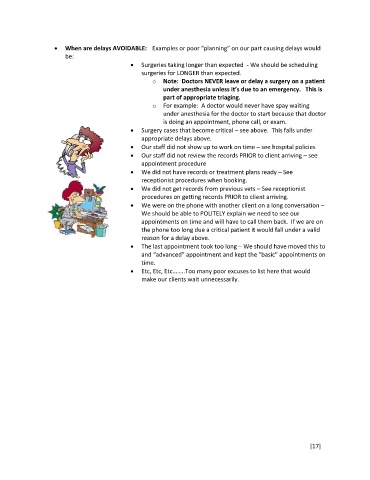 When are delays AVOIDABLE: Examples or poor “planning” on our part causing delays would