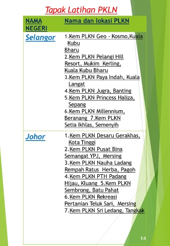 Selangor 1.Kem PLKN Geo – Kosmo,Kuala