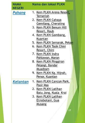 NAMA Nama dan lokasi PLKN