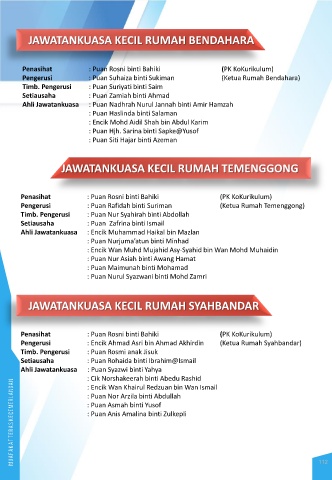 Pengerusi : Puan Suhaiza binti Sukiman (Ketua Rumah Bendahara)