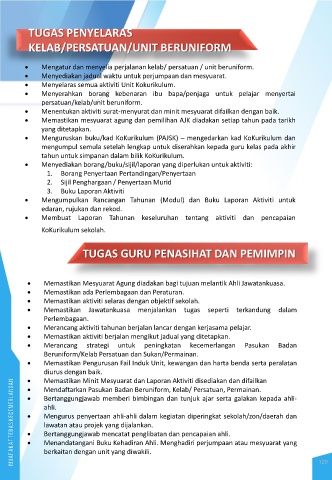 Menyelaras semua aktiviti Unit Kokurikulum.