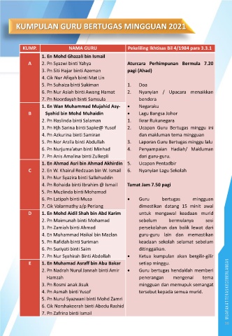KUMPULAN GURU BERTUGAS MINGGUAN 2021