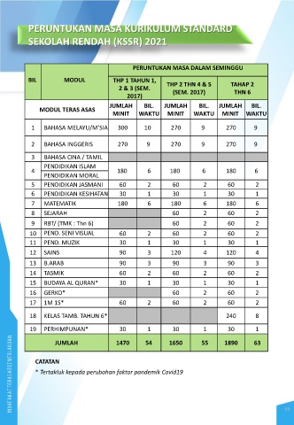PERUNTUKAN MASA KURIKULUM STANDARD