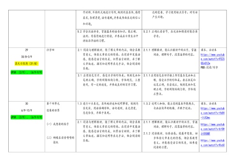 29 识字四 2.1 阅读与理解教材,能了解文章的内涵,领会其教 2.1.1 理解教材,能认识教材中的汉字,掌握 课本、活动本