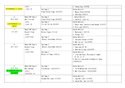 新年特别假期(一)(15/2) 一起想一想 Sub Tema 2 Contoh Aktiviti: