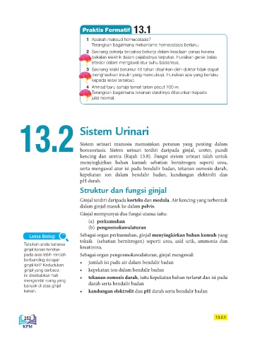kencing dan uretra (Rajah 13.8). Fungsi sistem urinari ialah untuk