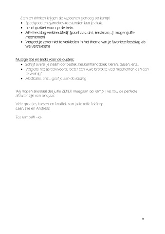 • Speelgoed en gameboy-toestanden laat je thuis.