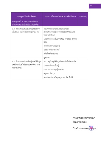 มาตรฐาน/ประเด็นพิจารณา โครงการ/กิจกรรม/แนวทางการด าเนินงาน หมายเหตุ