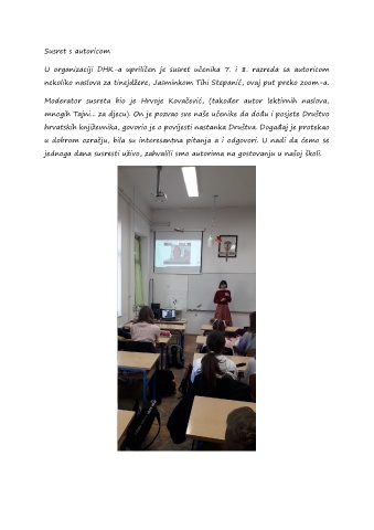 U organizaciji DHK-a upriličen je susret učenika 7. i 8. razreda sa autoricom