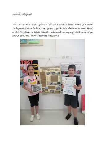 Dana 27. svibnja, 2022. godine u OŠ Ivana Batelića, Raša, održan je Festival