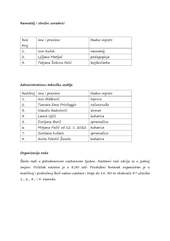 smjeni. Početak nastave je u 8,00 sati. Produženi boravak organiziran je u