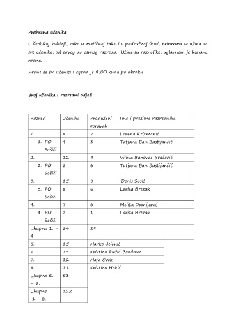 sve učenike, od prvog do osmog razreda. Užine su raznolike, uglavnom je kuhana