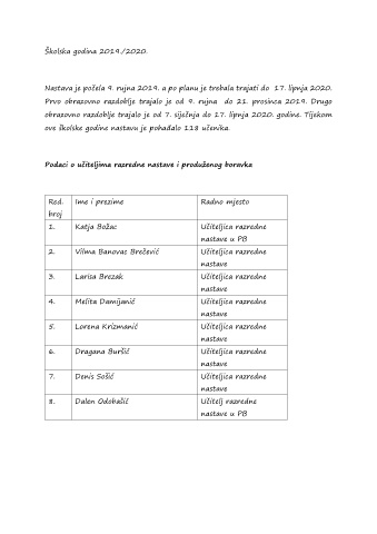 obrazovno razdoblje trajalo je od 7. siječnja do 17. lipnja 2020. godine. Tijekom