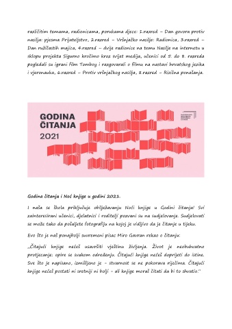 različitim temama, radionicama, porukama djece: 1.razred – Dan govora protiv