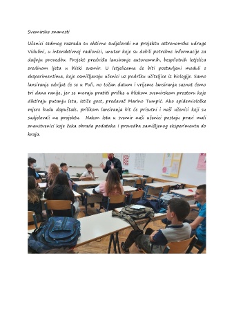 sudjelovali na projektu. Nakon leta u svemir naši učenici postaju pravi mali