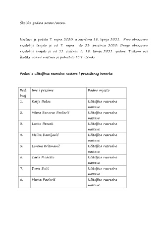 Nastava je počela 7. rujna 2020. a završava 18. lipnja 2021. Prvo obrazovno