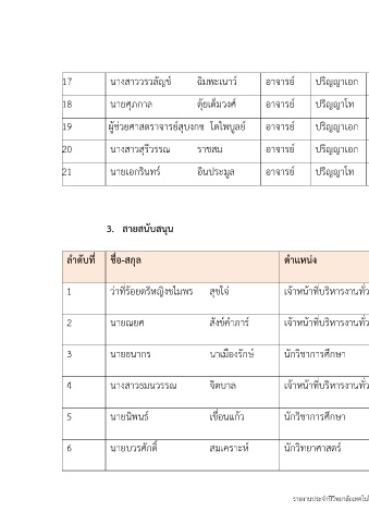 20 นางสาวสุรีวรรณ ราชสม อาจารย์ ปริญญาเอก Doctor of Philosophy (Sciences) 12 ผู้ช่วยศาสตราจารย์