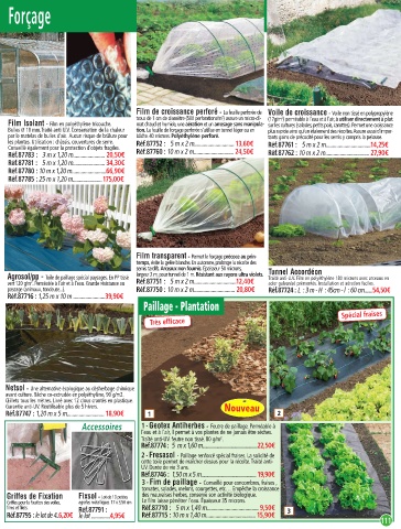 les plantes. Utilisation : châssis, couvertures de serre. Réf.87752 : 5 m x 2 m.............................. 13,60€ Réf.87761 : 5 m x 2 m..................................14,25€