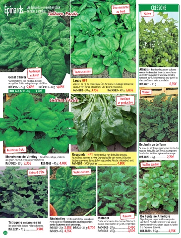 Réf.4962 - 20 g : 2,35€ Réf.4963 - 40 g : 4,40€ Réf.4992 - 1000 graines .................................. 4,80€ Feuilles tendres