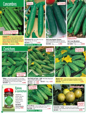 Hokus - Fruit de belle présentation vert foncé, lisse Vert Petit de Paris - Hâtif - Petits fruits, allongés, cylin- Madita HF1 - Fruits courts épineux. Excellent cornichon. Réf.4750 - 20 semences ............6,10€