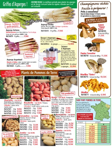 le calibre risque d’être modifié Plants de Pommes de Terre LE CONDITIONNEMENT Morilles “Extra“