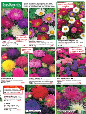 Reines Marguerites Floraison d’août aux gelées. De culture facile, vous serez Pour de magnifiques