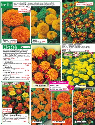 Roses d’Inde Semer en avril en pépinière. Repiquer avec la motte fin mai. Floraison de juillet à Plante exceptionnelle