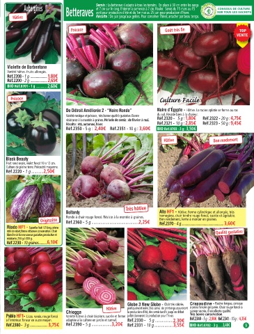 en infusion. Séchez-les pour l’hiver, elles sont indispensables en cuisine. Betteraves avril pour production d’été et du 1er mai au 25 juin pour production d’hiver. SUR TOUS LES SACHETS