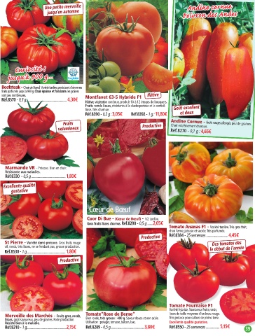 0,5 g : 3,40€ Merveille des Marchés - Fruits gros, ronds, Bien ronde, très grosse : 400 g. Saveur douce et non acide. Très précoce pour culture de pleine terre.