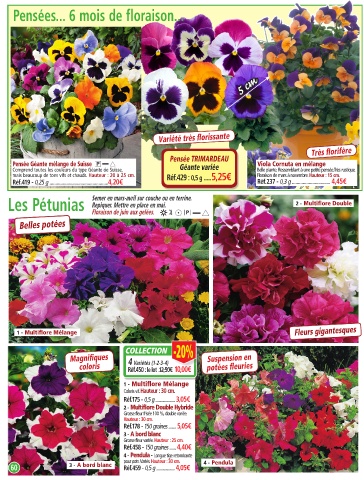 mais beaucoup de tons vifs et chauds. Hauteur : 20 à 25 cm. Réf.429 : 0,5 g .....5,25€ Floraison de mars à novembre. Hauteur : 15 cm. Hauteur : 30 cm. Fleurs doubles de régularité parfaite.