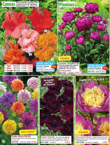 2 - Rose Réf.11224 - Le bulbe : 3,90€ 1 de chaque variété grande fleur. ø 20 cm. Cal. 2/3 Lot de 4 Pivoines -15%