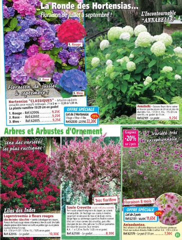 Réf.11317 - Lot de 5 bulbes......................7,75€ La plante ramifiée 15/20 cm en godet annabelle - Grosses fleurs blanc crème