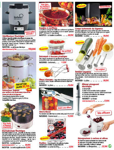 Réf.89977 - Le lot de 3 pièces..............7,90€ Réf.97136 - Le tamis supplémentaire 8,99€ Réf.89924 - Le sachet de 20 g...........................3,95€ Réf.89906 - Le dénoyauteur...............25,50€