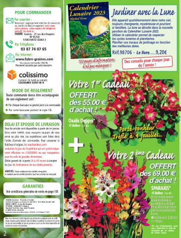 votre N° de client à : parution du Calendrier Lunaire 2023.