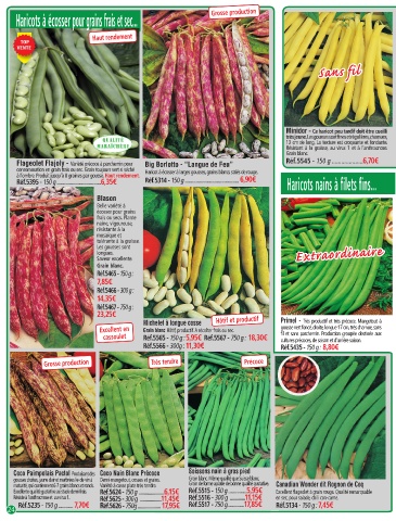 cassoulet Réf.5565 - 150 g : 5,95€ Réf.5567 - 750 g : 18,30€ fil et sans parchemin. Production groupée destinée aux exceptionnelles. Rendement élevé, végétation saine et vigoureuse.