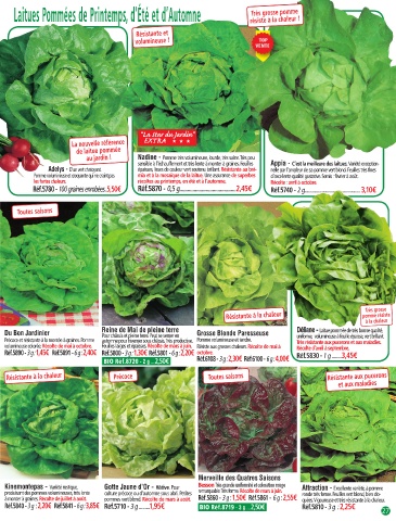 à monter à graines. Récolte de juillet à août. pommes vert blond. Récolte de mars à août. Réf.5860 - 3 g : 1,50€ Réf.5861 - 6 g : 2,55€ quées. Vigoureuse et très résistante à la chaleur.