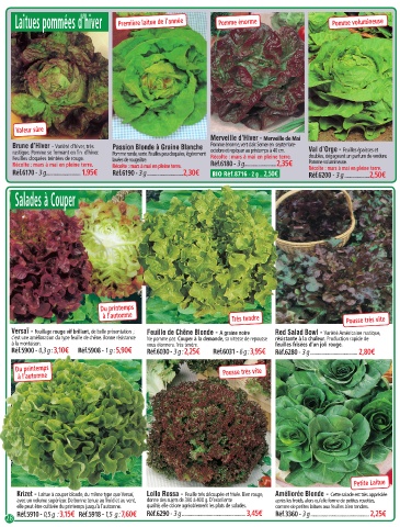 Récolte : mars à mai en pleine terre. Récolte : mars à mai en pleine terre. Réf.6180 - 3 g..........................2,35€ Pomme volumineuse. Réf.7310 - 5 g : 2,55€ Réf.7311 - 10 g : 4,10€