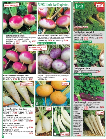 Bonne conservation Navets : Récolte d’avril à septembre... Persils Hâtif