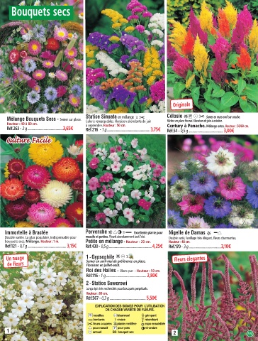 Mélange Bouquets Secs - Semer sur place. Coloris remarquables. Floraison abondante de juin Mettre en place fin mai. Floraison de juin à octobre.