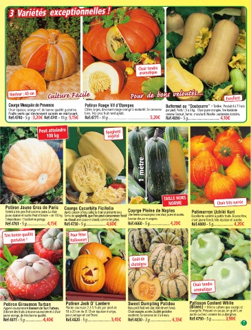 garniture, confit, etc… jaune orange, de très bonne qualité. pour potage et confiture. excellente. Se conserve de 3 à 4 mois. purée ou farci comme les aubergines.