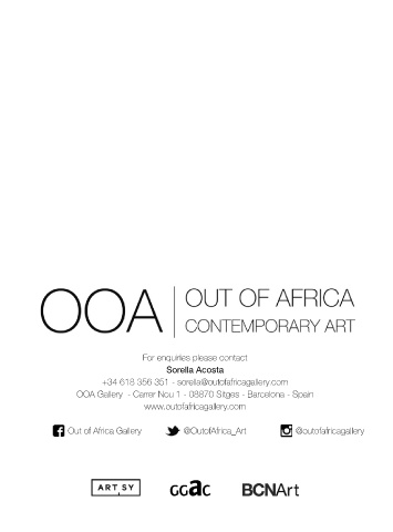 For enquiries please contact Sorella Acosta +34 618 356 351 - sorella@outofafricagallery.com OOA Gallery - Carrer Nou 1 - 08870 Sitges - Barcelona - Spain www.outofafricagallery.com Out of Africa Gallery @OutofAfrica_Art @outofafricagallery