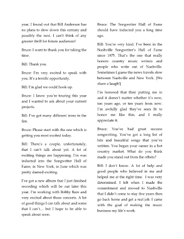 year. I found out that Bill Anderson has Bruce: The Songwriter Hall of Fame