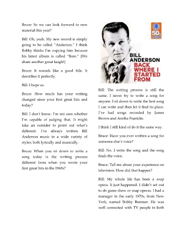 Anderson music in a wide variety of Bruce: Have you ever written a song for