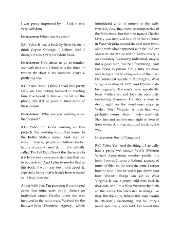 R.G. Yoho: It was a book by Scott Harris. I in West Virginia around the coal mine wars,