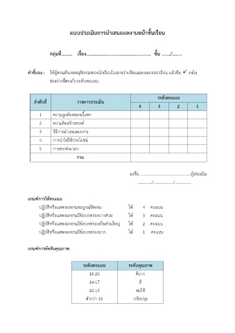 แบบประเมินการนำเสนอผลงานหน้าชั้นเรียน