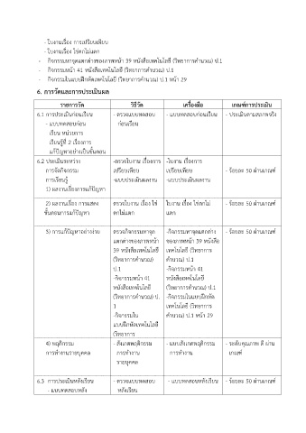 6.3 การประเมินหลังเรียน - ตรวจแบบทดสอบ - แบบทดสอบหลังเรียน - ร้อยละ 50 ผ่านเกณฑ์