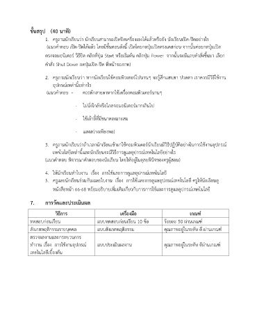 1. ครูถามนักเรียนว่า นักเรียนสามารถเปิดปิดเครื่องเองได้แล้วหรือยัง นักเรียนเปิด-ปิดอย่างไร