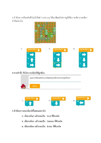 3.ถ้าต้องการเขียนค าสงในเว็บไซต์ Code.org ใหนกสแดงไปหาหมูสเขียว จะต้องวางบลอก
