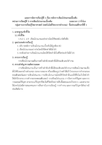 แผนการจัดการเรียนรู้ที่ 1 เรื่อง หลักการเขียนโปรแกรมเบื้องต้น