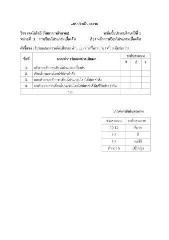 ข้อท ี่ เกณฑ์การวัดและประเมินผล